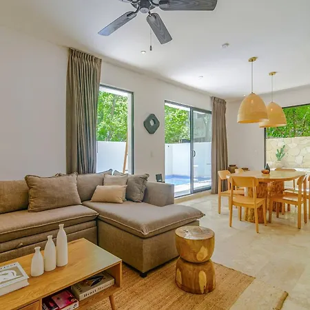 Offering a private pool, the 182 ft² Tropical Retreat: Scooters, Hot Tub, Pool, Projector Apartment Tulum is situated approximately 10 minutes by car from the fringed Paradise Beach. The national park "Parque Nacional de Tulum" is located 2.4 miles from the apartment.
