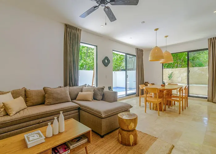 Enjoy the convenience of a fully furnished kitchen in the apartment, allowing guests to prepare their own homemade meals. If you have an early flight from Tulum, Tropical Retreat: Scooters, Hot Tub, Pool, Projector Apartment is located 41 miles from Aeropuerto de Playa del Carmen airport. The accommodation also includes a patio.